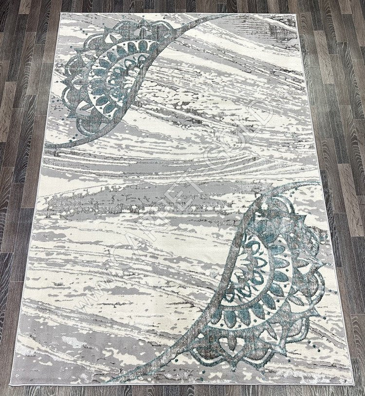 Ковер турецкий 0921A FAME (полиэстер хит сет, серый, голубой)